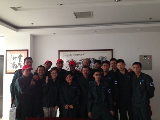 我司與印度尼西亞BAKRIE公司簽訂管道外防腐生產(chǎn)線銷售協(xié)議,2014年7月14日,BAKRIE公司員工一行15人來到我司產(chǎn)品銷售客戶海隆集團(tuán)進(jìn)行管道外防腐設(shè)備操作培訓(xùn)。