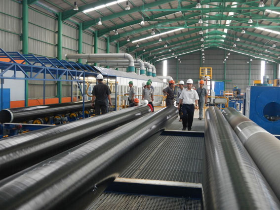 我公司與印尼PT. BAKRIE PIPE INDUSTRIES 鋼管公司簽約的整套外防腐生產(chǎn)線設(shè)備制造項(xiàng)目已于2014年11月20日順利完成安裝調(diào)試,并生產(chǎn)出了合格防腐管,這標(biāo)志著我公司進(jìn)一步擴(kuò)展了東南亞市場(chǎng),為鼎盛走向世界打下堅(jiān)實(shí)的基礎(chǔ)。