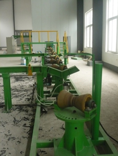 直徑較小的鋼管采用腰鼓輪一體式的螺旋輥道,安裝調(diào)整方便,角度旋轉(zhuǎn)盤一次調(diào)節(jié),螺距統(tǒng)一變化量小;管底高變化量小,按鋼管管徑級(jí)別調(diào)整的功能,維修維護(hù)方便,變形量小特點(diǎn)。輪座下兩配合面之間配1~2mm聚四氟夾層,調(diào)整輪間距時(shí)簡(jiǎn)捷省力;調(diào)節(jié)精度在調(diào)節(jié)輪組處均配裝刻度尺,以便于觀察。傳動(dòng)線在調(diào)整完畢后,用鎖緊裝置將傳動(dòng)線鎖緊。并保證調(diào)節(jié)裝置能夠取下移出。