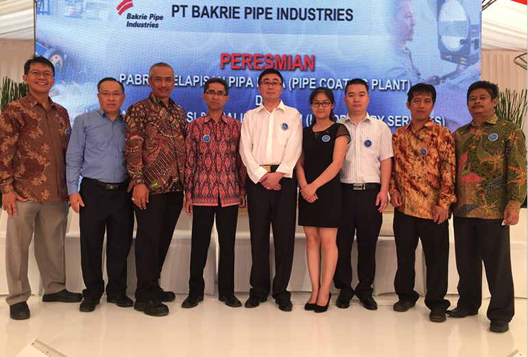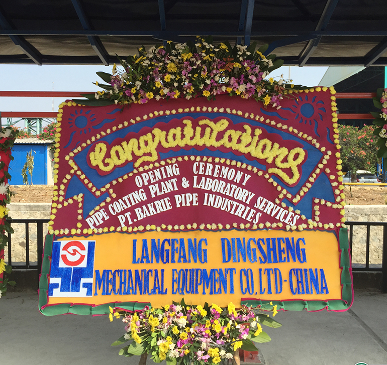 BAKRIE is the largest steel pipe company in Southeast Asia, renowned in the industry. May 21,2015,BAKRIE held a grand opening ceremony of steel pipe coating company, our company was invited to participate in this ceremony as the manufacturer of this whole set external pipe coating equipment. This marks that our company play an important role in Southeast Asia. Also we made a present bronze tripod to our owner, send our best wishes to BAKRIE. We wish that our two side can create more space for cooperation.