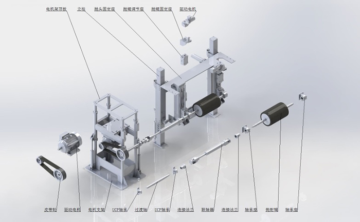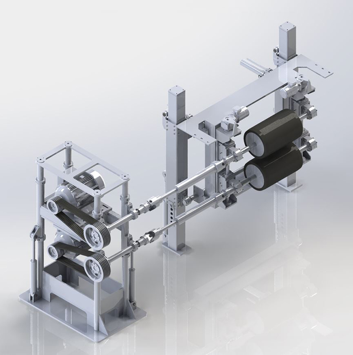 Function description: Concrete weight coating layer ejection system includes ejection roller, couplings, drive motor, etc. When the pipe is rotating, transferring pipe trolley uniformly forward and ejection roller ran in the high speed. Coating material will be transferred to ejection roller by the feeding belt. Ejection roller ran fast and eject the coating material onto the external pipe wall, then the material attached to the wall.