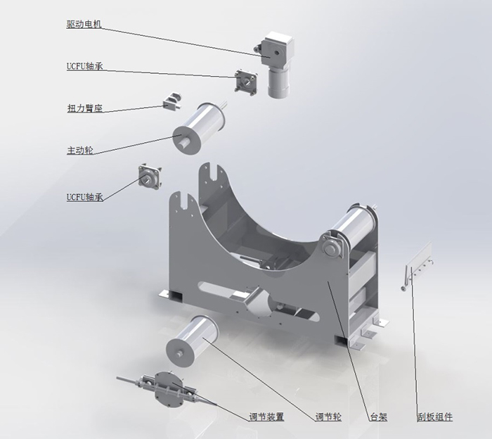 Function description:Rotating pipe device includes driving wheel ,adjustable wheel,rubber belt,etc.Pipes which finished concrete weight coating placed on the rotating pipe device steadily by the transferring trolley. This device is mainly for concrete weight coating pipe end cutting and repairing.